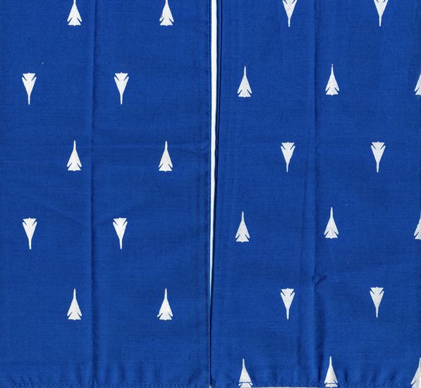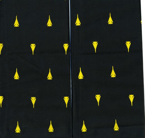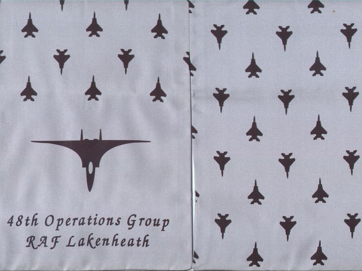has dark blue, yellow, red, and green F-111 silhouettes on